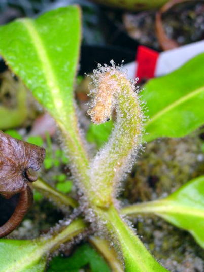 | 栽培方法 | 夏の暑さに若干弱いです、用土の過湿に注意しないといけません、ミズゴケ植えの場合表面が白く乾いてきたら潅水します、乾きにはある程度強いですが用土が乾き切る前に必ず潅水します、またこの種は特にムレに弱く空気の流通に気を配り撹拌扇などを使用して常に空気を動かしてください、よどんだ空気だと葉が黒くなり時にはそのまま枯れこんでしまいます、栽培維持は簡単ですがなかなか大株には作りにくい種類です。 | ||||||