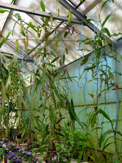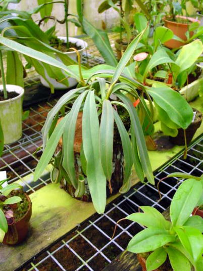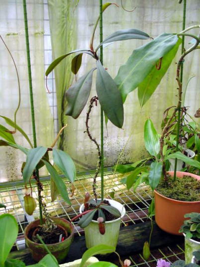 今回のスペシャリストは私が食虫栽培を始める遥か昔からネペンテスを手がけておられる 大ベテランの鈴木氏!うつぼかずらの郷の園主でもあります。 低地性のネペンテスが主ですが集められたコレクションの種類数もさることながらその出来栄えは自生地さながら特にN.bicalcarataの大きさには度肝を抜かれました。またレアな種類も多く輸入では手に入らないマニア好みするものが沢山あります。温室はメロンを作っていたハウスを解体してご自身で今の場所に移築してこられたとかこれにはビックリでした!!更には暖房は家庭用の給湯器を使用してお手製の温湯暖房の設備を作られています。お湯を通す管はこれまた手作りで銅でできた雨どいをハンダづけしてつなぎ合わせています。 (めちゃめちゃ器用。。)温室内は植物園さながら通路には石畳など来客への配慮も充分です。ここでは苗の通販もしておりそのほとんどが輸入に頼らない自家増殖苗です。興味のある方は直接お問い合わせください。面白いものが見つかるかも。。!!