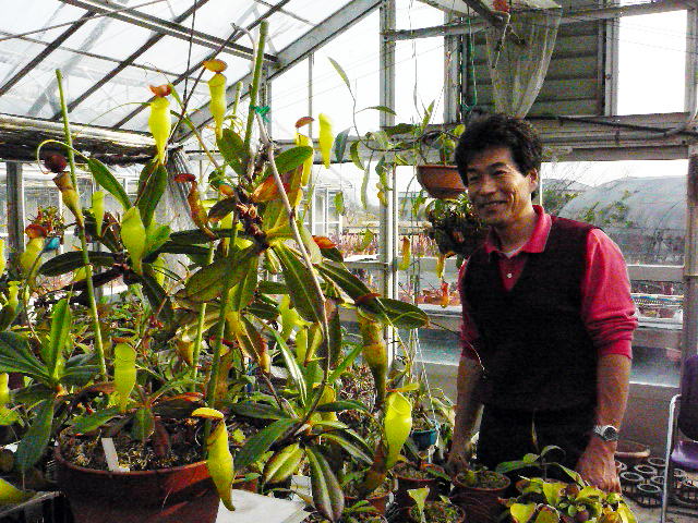 直径5.6センチの苗を9年でここまで大きくされていました。多きな株が3株ありそれぞれ入手経路が違い雌雄が揃っています。国内でこの種をここまで育て上げれる方はそうは居ないはずです。