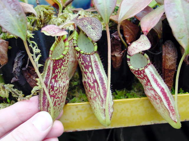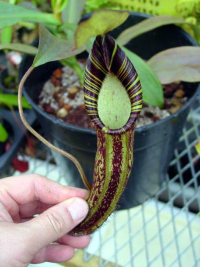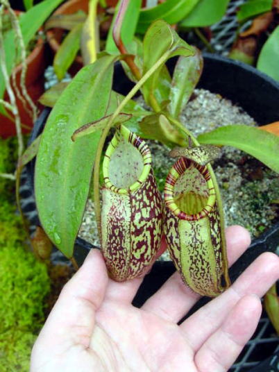 黄色と褐色のコンビの襟が非常に綺麗で多くの交配種の片親として使用されています、茎を長く伸ばさなくても花が咲きやすいので交配親としては利用しやすいです、栽培は高温には弱くこの種に袋を付けさせるためにはやはり30℃以下に管理した方が良いでしょう、夏場の昼間の潅水はムレて下葉や根を痛めてしまうので控えます。