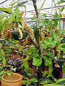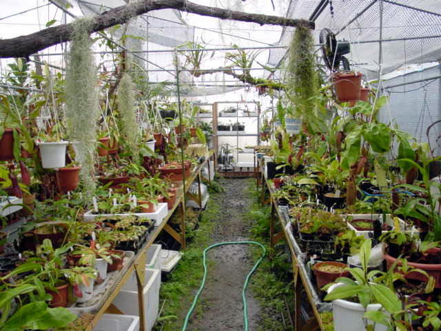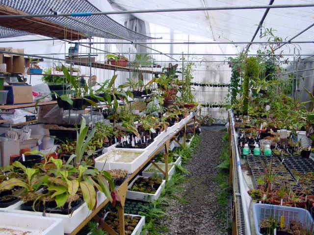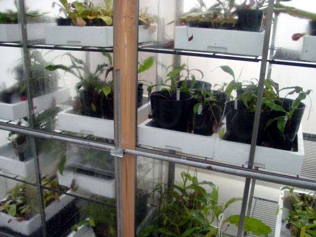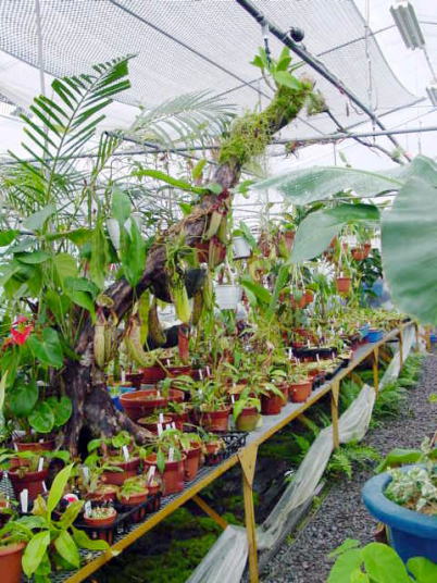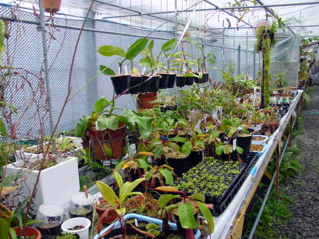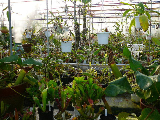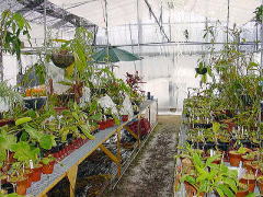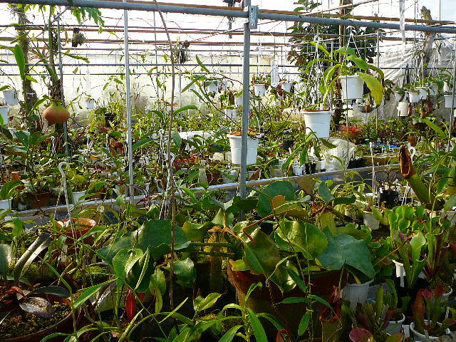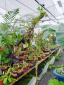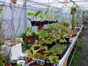 今現在は100坪の温室のうち間仕切りをして50坪をネペンテス残りを加温の要らないサラセニア、ディオネアなどを栽培しております。 |