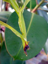 色だけでなく、葉のつやも光線によって変化し、適当な光線があたっている葉は適度のつやを持っていますが、光線不足になると、なるべく光線を反射しないように葉のつやがなくなり、反対に、光線過多の場合は反射を高め、蒸散によって過度の水分が失われるのを抑えるために、葉はロウでも塗ったように、硬くつるつるになります。