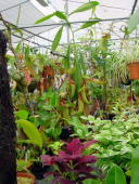 今現在は100坪の温室のうち間仕切りをして50坪をネペンテス残りを加温の要らないサラセニア、ディオネアなどを栽培しております。 |