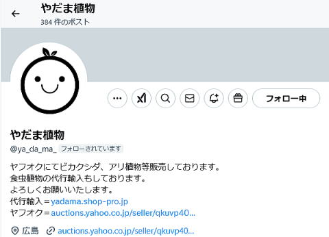 【 山田食虫植物農園の代表のX.com 】